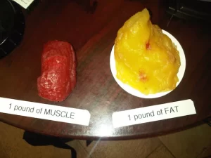 That’s also a reason why losing weight rapidly can indicate that you’re more likely to be losing muscle mass than fat. Muscle weighs a bit more, so losing weight quickly is never a good thing.